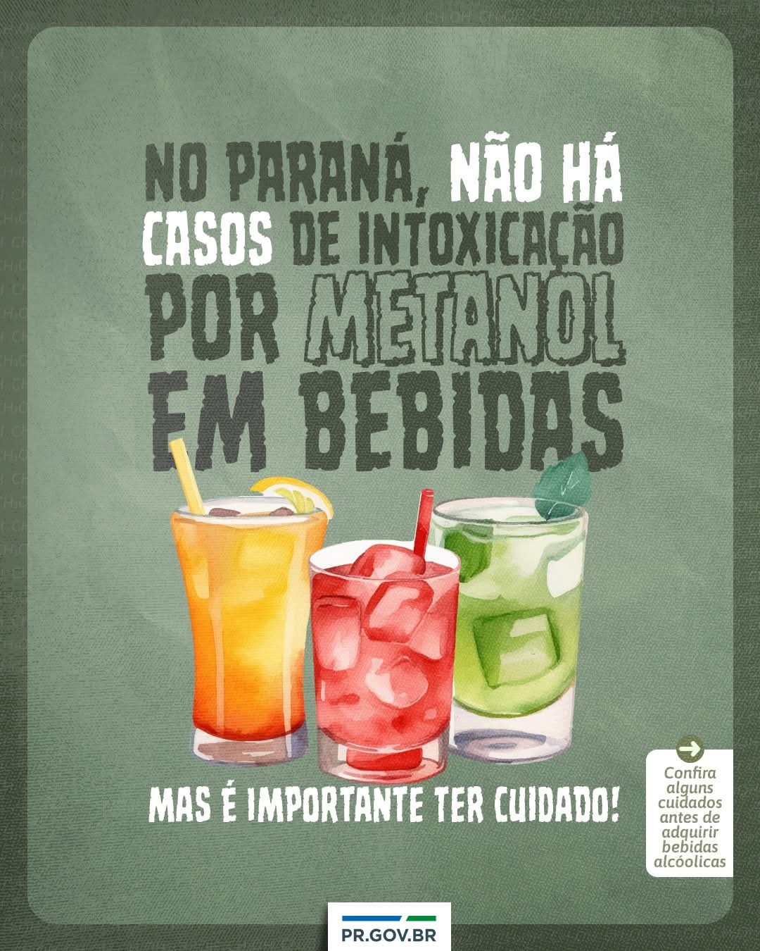 A Secretaria da Saúde do Paraná emitiu um alerta sobre os riscos de intoxicação por metanol.